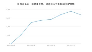2021年11月,哈弗赤兔销量为3371辆,环比下降11.03%。1-11月份,哈弗赤兔销量为19657辆,在最近1年中,哈弗赤兔销量在2021年10月达到最高,销量为3789辆。