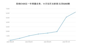2021年11月,思皓E10X销量为6265辆,环比增长21.72%。1-11月份,思皓E10X销量为17837辆,在最近1年中,思皓E10X销量在2021年11月达到最高,销量为6265辆。