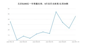 2021年11月,北京BJ90销量为46辆,同比增长84%,环比增长100%。1-11月份,北京BJ90销量为246辆,同比下降1.2%。在最近1年中,北京BJ90销量在2021年08月达到最高,销量为54辆。