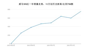 2021年11月,威马W6销量为756辆,环比增长26.21%。1-11月份,威马W6销量为3583辆,在最近1年中,威马W6销量在2021年11月达到最高,销量为756辆。