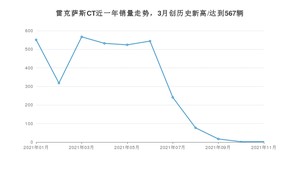 2021年11月,雷克萨斯CT销量为3辆,同比下降99.55%,环比增长50%。1-11月份,雷克萨斯CT销量为3376辆,同比下降32.76%。在最近1年中,雷克萨斯CT销量在2021年03月达到最高,销量为567辆。