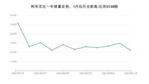 2021年11月,柯米克销量为2172辆,同比下降41.69%,环比下降26.77%。1-11月份,柯米克销量为31003辆,同比下降15%。在最近1年中,柯米克销量在2021年01月达到最高,销量为5138辆。