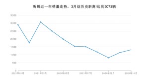 2021年11月,昕锐销量为1318辆,同比下降48.17%,环比增长16.02%。1-11月份,昕锐销量为19727辆,同比下降16.73%。在最近1年中,昕锐销量在2021年03月达到最高,销量为3073辆。