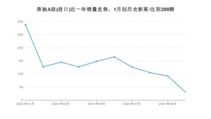 2021年11月,奔驰A级(进口)销量为30辆,同比下降87.7%,1-11月份,奔驰A级(进口)销量为1353辆,同比下降63.78%。在最近1年中,奔驰A级(进口)销量在2021年01月达到最高,销量为288辆。