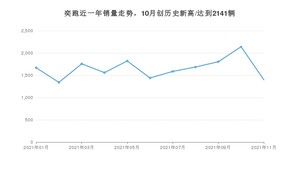 2021年11月,奕跑销量为1399辆,同比下降18.95%,环比下降34.66%。1-11月份,奕跑销量为18204辆,同比下降0.36%。在最近1年中,奕跑销量在2021年10月达到最高,销量为2141辆。