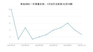2021年11月,奥迪S8销量为4辆,环比下降33.33%。1-11月份,奥迪S8销量为65辆,在最近1年中,奥迪S8销量在2021年01月达到最高,销量为15辆。