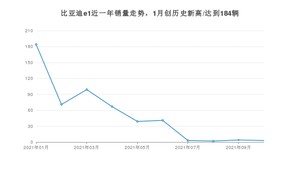 2021年11月,比亚迪e1销量为3辆,同比下降97.6%,1-11月份,比亚迪e1销量为513辆,同比下降70.42%。在最近1年中,比亚迪e1销量在2021年01月达到最高,销量为184辆。