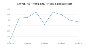 2021年11月,MARVEL R销量为370辆,环比下降6.8%。1-11月份,MARVEL R销量为3625辆,在最近1年中,MARVEL R销量在2021年05月达到最高,销量为546辆。