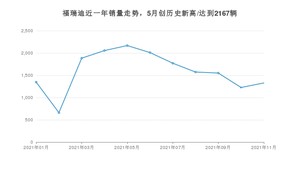 2021年11月,福瑞迪销量为1328辆,同比下降29.92%,环比增长8.32%。1-11月份,福瑞迪销量为17572辆,同比增长20.37%。在最近1年中,福瑞迪销量在2021年05月达到最高,销量为2167辆。