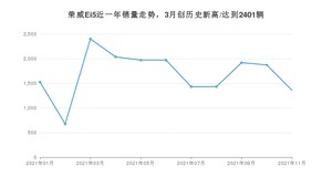 2021年11月,荣威Ei5销量为1357辆,同比下降31.53%,环比下降27.55%。1-11月份,荣威Ei5销量为18589辆,同比增长60.25%。在最近1年中,荣威Ei5销量在2021年03月达到最高,销量为2401辆。