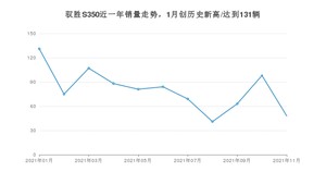2021年11月,驭胜S350销量为48辆,环比下降51.02%。1-11月份,驭胜S350销量为885辆,在最近1年中,驭胜S350销量在2021年01月达到最高,销量为131辆。