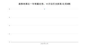 2021年11月,森雅鸿雁销量为8辆,1-11月份,森雅鸿雁销量为8辆,在最近1年中,森雅鸿雁销量在2021年11月达到最高,销量为8辆。