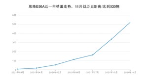 2021年11月,思皓E50A销量为520辆,环比增长54.76%。1-11月份,思皓E50A销量为1215辆,在最近1年中,思皓E50A销量在2021年11月达到最高,销量为520辆。