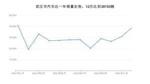 2021年12月,武汉市汽车总销量为38765辆,同比下降11.39%,环比增长26.18%。1-12月份,武汉市总销量为348280辆,同比增长14.7%。在最近1年中,武汉市销量在2021年01月达到最高,销量为40546辆。
