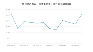 2021年12月,郑州市汽车总销量为51633辆,同比下降18.82%,环比增长49.87%。1-12月份,郑州市总销量为443630辆,同比下降2.3%。在最近1年中,郑州市销量在2021年01月达到最高,销量为52022辆。