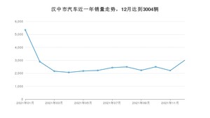 2021年12月,汉中市汽车总销量为3004辆,同比下降33.82%,环比增长35.87%。1-12月份,汉中市总销量为31755辆,同比增长3.39%。在最近1年中,汉中市销量在2021年01月达到最高,销量为5343辆。