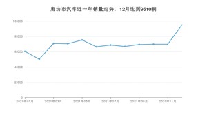 2021年12月,廊坊市汽车总销量为9510辆,同比下降16.04%,环比增长36.23%。1-12月份,廊坊市总销量为83333辆,同比增长7.47%。在最近1年中,廊坊市销量在2021年12月达到最高,销量为9510辆。