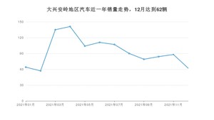 2021年12月,大兴安岭地区汽车总销量为62辆,同比下降50.4%,环比下降29.55%。1-12月份,大兴安岭地区总销量为1122辆,同比增长6.55%。在最近1年中,大兴安岭地区销量在2021年04月达到最高,销量为141辆。