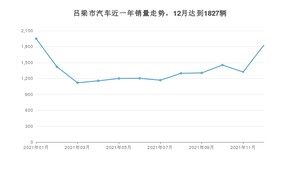 2021年12月,吕梁市汽车总销量为1827辆,同比下降19.02%,环比增长38.2%。1-12月份,吕梁市总销量为16420辆,同比下降6.13%。在最近1年中,吕梁市销量在2021年01月达到最高,销量为1951辆。