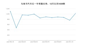 2021年12月,乌海市汽车总销量为1028辆,同比下降18.74%,环比增长34.73%。1-12月份,乌海市总销量为10639辆,同比增长5.93%。在最近1年中,乌海市销量在2021年01月达到最高,销量为1095辆。