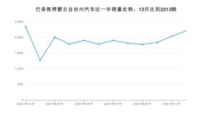 2021年12月,巴音郭楞蒙古自治州汽车总销量为2213辆,同比下降20.54%,环比增长8.8%。1-12月份,巴音郭楞蒙古自治州总销量为22649辆,同比增长22.16%。在最近1年中,巴音郭楞蒙古自治州销量在2021年01月达到最高,销量为2338辆。