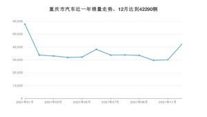 2021年12月,重庆市汽车总销量为42290辆,同比下降21.56%,环比增长40.94%。1-12月份,重庆市总销量为429449辆,同比增长1.57%。在最近1年中,重庆市销量在2021年01月达到最高,销量为57684辆。