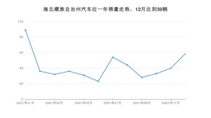 2021年12月,海北藏族自治州汽车总销量为59辆,同比下降15.71%,环比增长47.5%。1-12月份,海北藏族自治州总销量为505辆,同比下降10.14%。在最近1年中,海北藏族自治州销量在2021年01月达到最高,销量为89辆。