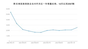 2021年12月,黔东南苗族侗族自治州汽车总销量为2567辆,同比下降25.18%,环比增长22.41%。1-12月份,黔东南苗族侗族自治州总销量为28866辆,同比下降4.15%。在最近1年中,黔东南苗族侗族自治州销量在2021年01月达到最高,销量为5387辆。