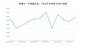 在国内市场上,奔腾在2021年12月的销量为5956辆,同比下降15.76%,环比增长24.5%。1-12月份,奔腾累计销量为60715辆,较去年同期下降13.9%。