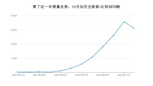 在国内市场上,雷丁在2021年12月的销量为3083辆,同比增长3%,环比下降13.69%。1-12月份,雷丁累计销量为13199辆,较去年同期增长4%。