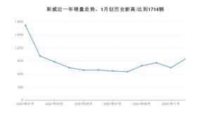 在国内市场上,斯威在2021年12月的销量为946辆,同比下降49.57%,环比增长27.67%。1-12月份,斯威累计销量为10372辆,较去年同期下降25.19%。