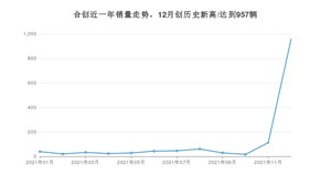 在国内市场上,合创在2021年12月的销量为957辆,同比增长770%,环比增长754.46%。1-12月份,合创累计销量为1406辆,较去年同期增长198.51%。