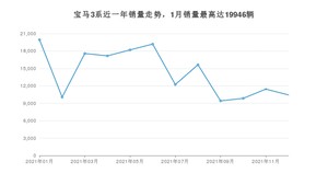 2021年12月,宝马3系销量为10444辆,同比下降23.12%,环比下降8.74%。1-12月份,宝马3系销量为171203辆,同比增长12.5%。