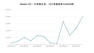 2021年12月,Model Y销量为40235辆,同比增长2%,环比增长71.86%。1-12月份,Model Y销量为160577辆,同比增长8%。