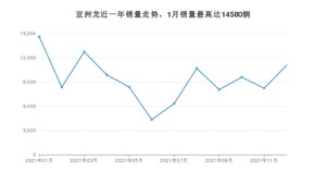 2021年12月,亚洲龙销量为11069辆,同比下降15.91%,环比增长34.61%。1-12月份,亚洲龙销量为112217辆,同比增长1.27%。
