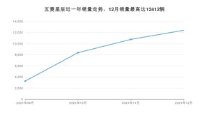 2021年12月,五菱星辰销量为12412辆,环比增长15.19%。1-12月份,五菱星辰销量为34839辆,
