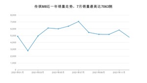 2021年12月,传祺M8销量为4760辆,同比下降21.54%,环比下降18.18%。1-12月份,传祺M8销量为64580辆,同比增长93.88%。