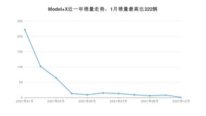 2021年12月,Model X销量为1辆,同比下降99.94%,1-12月份,Model X销量为462辆,同比下降92.74%。