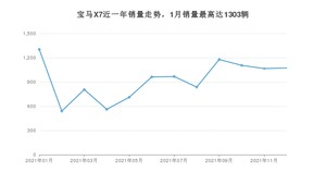 2021年12月,宝马X7销量为1073辆,同比下降1.65%,环比增长0.66%。1-12月份,宝马X7销量为11110辆,同比增长14.6%。