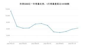 2021年12月,传祺GS4销量为6371辆,同比下降58.5%,环比增长8.48%。1-12月份,传祺GS4销量为84123辆,同比下降28.49%。