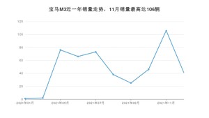 2021年12月,宝马M3销量为41辆,同比增长4%,环比下降61.32%。1-12月份,宝马M3销量为474辆,同比增长4%。