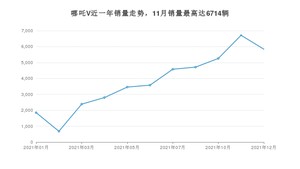 2021年12月,哪吒V销量为5840辆,同比增长219.13%,环比下降13.02%。1-12月份,哪吒V销量为41863辆,同比增长1%。