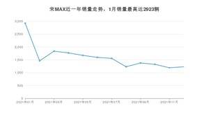 2021年12月,宋MAX销量为1230辆,同比下降61.69%,环比增长3.27%。1-12月份,宋MAX销量为19170辆,同比下降26.75%。