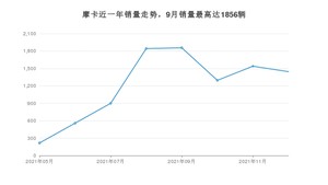 2021年12月,摩卡销量为1445辆,环比下降6.11%。1-12月份,摩卡销量为9653辆,
