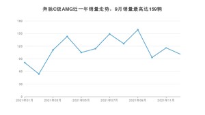 2021年12月,奔驰C级AMG销量为101辆,同比增长248.28%,环比下降12.93%。1-12月份,奔驰C级AMG销量为1352辆,同比增长43.37%。