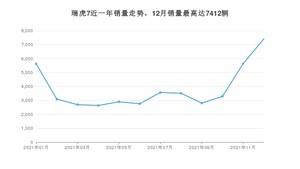 2021年12月,瑞虎7销量为7412辆,同比增长35.58%,环比增长31.65%。1-12月份,瑞虎7销量为45882辆,同比增长39.15%。