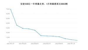 2021年12月,宝骏530销量为349辆,同比下降95.34%,环比下降30.62%。1-12月份,宝骏530销量为25354辆,同比下降50.58%。