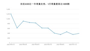 2021年12月,劲炫ASX销量为396辆,同比下降72.56%,环比增长13.79%。1-12月份,劲炫ASX销量为7616辆,同比下降30.66%。