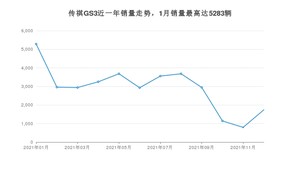 2021年12月,传祺GS3销量为1740辆,同比下降67.45%,环比增长118.87%。1-12月份,传祺GS3销量为34900辆,同比下降6.81%。