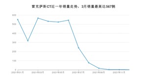 2021年12月,雷克萨斯品牌总体销量达到17265辆,其中雷克萨斯CT销量达到1辆,占品牌总销量的0.01%。